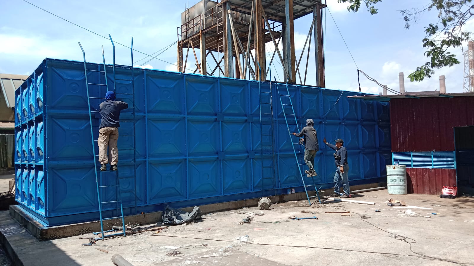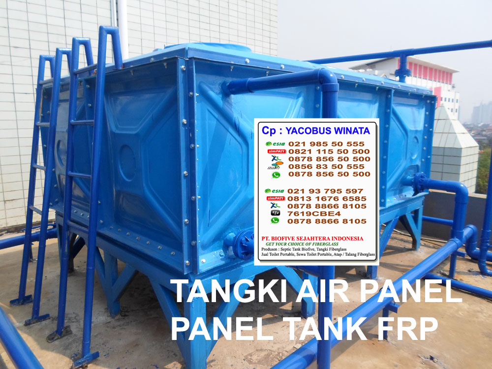Tangki Panel atau tangki air model kotak biasanya digunakan untuk gedung – gedung tinggi, Tangki ini dapat di rakit dimanapun dengan shell ukuran 1 x 1 meter dapat di susun dan dirakit sampai tinggi ketinggian 5 susun atau 5 meter dari lantai dan bisa di tentukan ukuran panjang dan lebarnya tangki sehingga mempermudah mencapai volume tangki yang besar sampai 100 kubik. di support oleh besi UNP sebagai landasan atau dudukan Tangki panel ini sangat kuat dan dilengkapi dengan tangga luar dan dalam agar mempermudah proses maintainance kebersihan tangki ini.